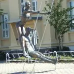 På skolgården som ligger högt och vackert finns det inget alls för barnen, bara den skulptur som syns på bilden nedan. Så här behöver barnen inte ens gunga och leka själva.