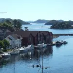 I kväll nådde vi fram till Farsund. Från havet kom vi direkt in mellan höga och lummiga berg. Nu har lagt till i gästhamnen mitt i byn. Här ligger man gratis sägs det och i högsäsong får man till och med gratis morgonbröd och avis. Fast duschen kostar 30 kr och affären (som håller med bryggan) är nog inte särskilt billig…