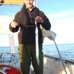 På lördag hade vi fortfarande perfekt mottagning på P1 mitt på Skagerrak under förmiddagen! Näbbgäddan hade alldeles turkosa ben och smakade mycket gott med en sås på grädde och vin.