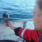 På torsdagskvällen hade den nya vindgivaren kommit och den hårda västvinden försvunnit. Vi kastade loss vid 20-tiden. Så fort vi kom ut på havet blev det tvärstopp, nästan ingen vind men gamla höga vågor rakt emot oss från kulingen. Snabbt hittade vi Brandskär, en liten ö med en helt skyddad vik precis så stor att vi fick plats att ligga på svaj. Höga berg på sidorna med nyponrosor och blommor i skrevorna. Här låg vi lugnt och mysigt. En säl kom in i viken och tittade på oss. I det klara vattnet såg man hela sälens kropp och hur den rörde sig under vattnet. På fredag tog Ingela årets första morgondop! Dagen ägnades till att flytta mottagaren för den nya vindgivaren. Vid fyratiden fortsatte vi ut på Skagerack. Efter några timmar fick Nils napp. Först såg det ut som en ål men det var en näbbgädda.