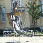 På skolgården som ligger högt och vackert finns det inget alls för barnen, bara den skulptur som syns på bilden nedan. Så här behöver barnen inte ens gunga och leka själva.