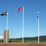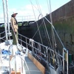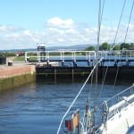 Vid åtta på morgonen ankrade vi upp på sexmeters djup och sover till högvattnet vid lunch innan vi går in mot Inverness. Delar av besättningen tog ett salt dopp (nu blir det sötvatten i en vecka) och sedan för motor en timme in till Inverness. Det tar emot i hela kroppen att segla in där det står 1,1 meter i sjökortet fast vi vet att det är ca 3,5 meter när man lagt till aktuellt tidvatten. I första slussen flaggar de på tre stänger; skotska, brittiska och svenska flaggor. Det var nog inte för oss även om vi var ensam båt i slussen utan snarare för att de är ”systerkanal” till Göta kanal. Oerhört vänliga och hjälpsamma var de i alla fall trots att vi bara hittade gamla försäkringspapper.