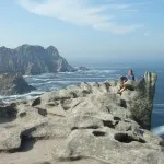 Att runda Finisterre (den Spanska, det finns ju en Fransk också, ”Bodil Malmstens”) är ett etappmål. Dels för att så många skrivit om det men också för att det är en imponerade klippa (hoppas det framgår av bilderna). Vi söker oss upp till en liten by, Ensanada del Sardiñeiro, i norr. Här står tiden stilla, små trånga, vindlande gränder och höga murar mot havet. Och förståss inte internet så vi seglar vidare på våra gamla prognoser.