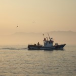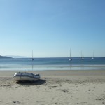 Vi fortsatte först västerut sedan söderut längs den Galiciska kusten. Varje natt ligger vi på svaj utanför någon strand oftast med en by eller stad strax intill. Nästan alltid är det vind från nordväst till nordost så vi väljer en strand på nordsidan som också är skyddad mot svall utifrån Atlanten.