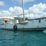 Här bytte vi kylvattenpump till kylboxen, fixade diverse smågrejor och passade på att handla olika båtprylar då det finns massor av båtaffärer. Efter att ha utforskat omgivningarna, bland annat mangroven, kände vi att vi ville ut i lite friskare vatten. Vi fyllde vattentanken med 800 liter färskvatten (inte samma vattenbrist som på öarna söderut, vi har till och med haft riktigt rejält regn en natt) och tog oss ut till Sante Anne. Det är en by i början på viken. Härifrån finns det en vandringsled ner runt Martiniques sydspets. Vi gick de första fem kilometrarna. Ibland inne i skogen, sedan på stranden och då och då även ute i vattnet. Vi passerade flera fantastiska ständer med olika inriktningar; en med massor med lördags-picknickade lokalbefolkning och hög musik från DJ:s mitt i skogen!, en med nästan bara nakna ensamma män, och en jättestrand där resten av ön tillbringade en ledig lördag. När vi skulle vända lossnade hela sulan på min ena sandal, men Ingela hittade en gammal fiskelina på stranden. Barfota mesta vägen och sedan hjälpligt hopsnörd tog vi oss tillbaka till båten rätt trötta. Kvällen innan var vi föresten på en lokal marknad med underhållning. Förutom dans och försäljning var det en man som spelade kreolsk säckpipa – det instrument som följt oss på denna resa.