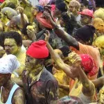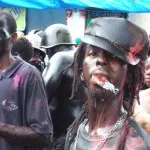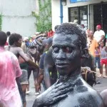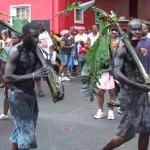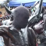 Det har varit svårt att hitta information och fakta om karnevalen. Turistbyråtexten menar att man smörjer in sig för att skrämma åskådarna och andra djävlar men vi undrar om det inte har en bakgrund i slaveriet och att göra sig lika svart som de som först kom hit. Där skulle också kedjorna passa in.