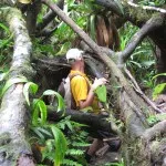 Sedan vi gått den välordnade lilla slingan i The Syndicat Rainforest gav vi oss upp på den betydligt vådligare vandringen mot toppen på Morne Diablotin. Efter två timmars klättring, på slutet meter för meter, och med kanske en tredjedel av vägen kvar vände vi för att inte bli kvar här uppe till skymningen. Det var mycket brant nästan hela vägen vilket gjorde att vi samtidigt såg regnskogens alla nivåer, vi stod på marken, och framför oss hade vi både mellannivån och trädtopparna på en gång. Det blev en riktigt härlig naturupplevelse bland enorma gummiträd, orkidéer och kolibrier till papegojornas tjatter.