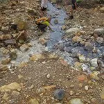 Långt ner på kraterns botten ryker det ur marken och från heta bäckar, lukten av svavel blir allt tydigare. När vi kommer ner går vi runt bland bubblande källor och ånga som fräser ur marken. På ett ställe möts en het och en kall bäck som blir till en ljummen. SeaCat har låtit äggen ligga några minuter i en het källa och vi får varsitt perfekt nykokt ägg. Från denna del av kratern Valley of Desolation var det ungefär en timmes vandring till den kokande sjön, nu under stark sol på trötta ben.