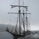 Nästa dag ligger dimman så tät att vi ställer in den planerade bussturen. En fransk tremastad skonare kom igår och ligger vid kajen. Vi träffar några i besättningen och visar dem vägen till affären (samma tur som vi blev visade dagen innan, byn är inte så stor men gatorna vindlande och det finns inga skyltar), de bjuder ombord oss och senare på dagen får vi en rundtur på skeppet Le Bel Espoir som byggdes i Danmark 1944. Nu ägs den av en fransk förening ”Vänner torsdag-söndag” som sysslar med ”utbildning och rehabilitering av unga vuxna i svårigheter, och även introduktionskurser till havet öppet för alla”. Vi byter adresser och får en inbjudan till Camaret Sur Mer i Bretagne som är skeppets hemmahamn.