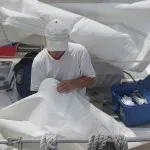 Så är det givetvis en del att fixa på båten. Genuans inhalningslina håller på att nötas av och måste bytas ut, vindrodrets linor som också nötts en aning kortas av och knyts om och samma gäller genuans skot som gick av under överseglingen, som tur var behöver den inte bytas ut utan kan bara kortas av. Med hjälp av vår utomordentligt kompetente båtgranne Capella-Mats får vi fart på autopiloten, han hjälper oss också med rattens överföring till hjärtstocken som börjat glappa lite. Vi tätar ett par ställen där vatten läckte in under de våldsammast överbrytande sjöarna när vi hade kuling. Träet ute tar stryk av att utsättas för salt och sol i en månads tid och behöver ett nytt lager olja och lite ny olja inne skadar inte heller. Storseglet lagar vi själva med en bit av vår förra båt Gunga Dins gamla storsegel. Hela båten får en rejäl sötvattenstvätt och tvättstugan upprepade visiter.