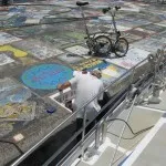Gläder mig dessutom åt att ni återvinner Gunga Dins storsegel – det kanske är enda delen av den båten som kommer till sjöss igen… Fast nu ska hon ju få ny motor, har jag hört, så det kanske inte blir någon brasa. Ett ytterligare glädjeämne är ert smakfulla konstverk på vågbrytaren i Horta. Ett väl valt ställe, där det inte genast slits ned av alla skosulor. Särskilt nöjd är jag med att ni återgav den fransiga flaggan på ett rättvisande sätt.