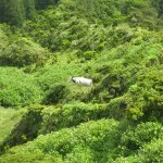 Hamnen på Flores har en lång vågbrytare som skyddar för de flesta vindriktningar. Längst in finns en marina som just nu håller på att färdigställas. När vi ankrade upp på kvällen den 5 juni var det bara ett par andra båtar på svaj så det fanns gott om plats. Efter en hel natts ostörd sömn pumpade vi jollen och tog oss iland. Marinan verkar fin och påkostad men dyningen letar sig in och vattnet strömmar fram och tillbaka och det rycker i förtöjningarna, vi är glada att vi ligger för ankar i lugn och ro här utanför. Den amerikanska båten Astor som vi sett på flera öar hade kommit strax före oss och berättade att ”myndigheten” dyker upp då och då i hamnen, formulären skrivs på motorhuven och sedan är det klart. Inte alls så krångligt som det står i pilotböckerna. Nu var han dock inte på plats så vi utforskade byn istället. Ner mot hamnen ligger små fina stenhus, överallt där det finns möjlighet odlas det för husbehov. Potatis, lök, blommor, men också bananer – klimatet här är jämnt pga havet och tydligen tillräckligt varmt. De bofasta verkar ta sig tid att stanna till och prata, och det finns verkligen att prata om eftersom det var val i Portugal i går. Det lokala valresultatet är anslaget på kommunhusets dörr. Det socialistiska regeringspartiet (PS) fick 50 röster men krossades av center-högerpartiet (PPD/PSD) som fick 118 röster. Man kan ju också prata om vem som röstade på kommunistpartiet eller vänsterpartiet för nationell förnyelse som fick en röst var. Partiet för djur och natur fick tre röster, lika många som det monarkistiska partiet. Vår portugisiska begränsar sig i stort sätt till bom dia och obrigado (goddag och tack) men det går bra ändå eftersom de flesta här kan engelska. Mannen som visade oss vägen till affären kommenterade valresultatet med – It sucks!