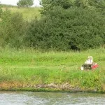 Så började en 100 kilometer lång färd på kanalen (på kanaler räknar man i km inte i NM). Det första stället att stanna över natten (fritidsbåtar får inte åka mellan 19:30 och 02:30) var en vik med pålar att förtöja mellan, utan möjlighet att komma i land. Vi fortsatte mot nästa ställe, Gieselau Canal. Några minuter före 19:30 förtöjde vi vid en brygga strax innan en liten sluss – rena idyllen!