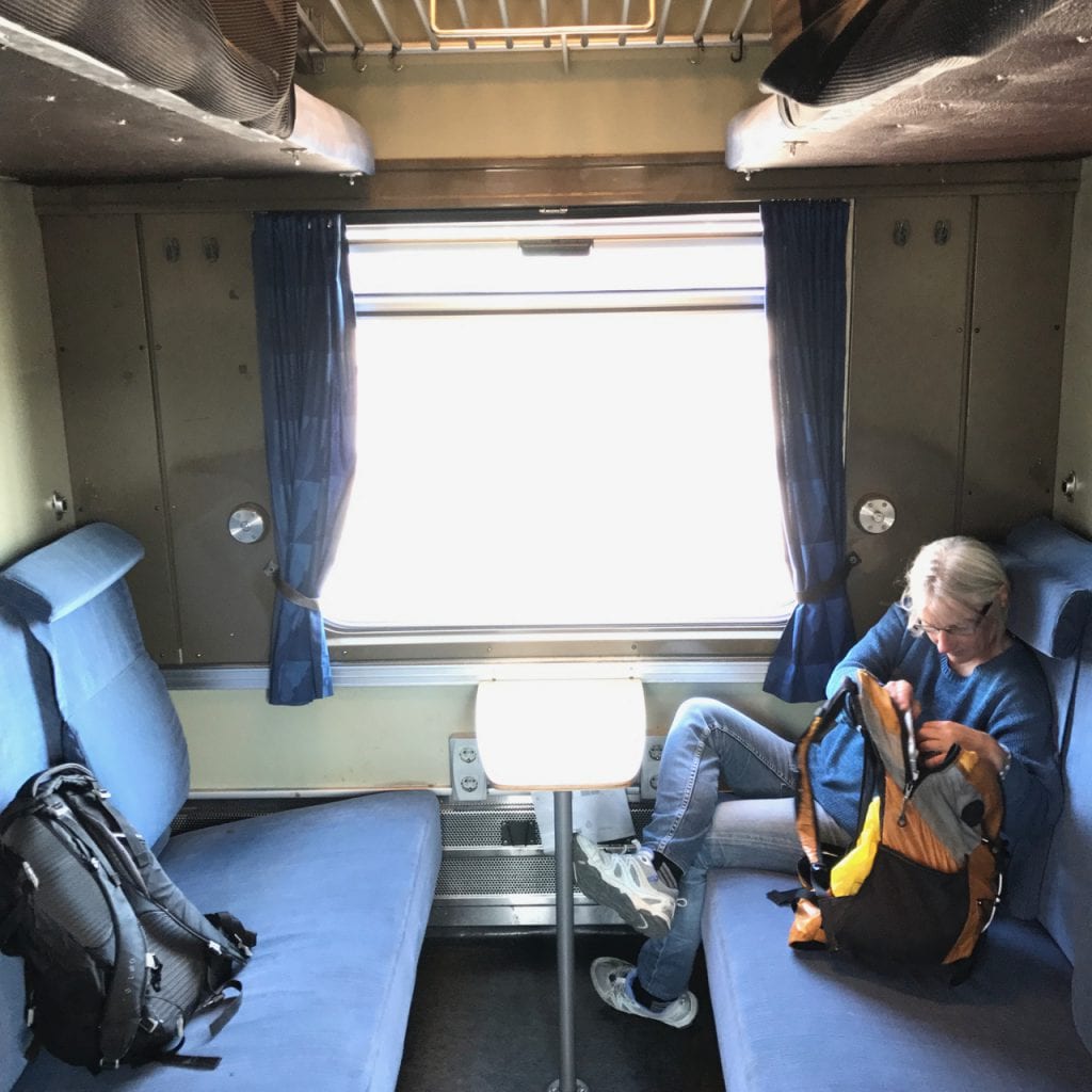 - På Öland i slutet av maj, hos våra vänner Karin och Erik, kom vi att tala om hur långsamt det går att resa med båt jämfört med bil. Förutom båt, färdas vi gärna med tåg och då (som när vi fuskade och tog tåget till Stockholm för lite jobb och fix med lägenheten) tog det en dag att åka samma sträcka som det tagit oss tre veckor med båt. För några år sedan skulle vi segla till vännen Monikas födelsedagsfest i Arlöv men blev en månad försenade. När vi seglar som snabbast, tex på Hanöbukten där vi hade en stabil slör i tio m/s, gjorde vi 7 knop dvs 13 km/h. Inte så imponerande, men oftast går det nog inte fortare än 7 km/h om vi ska vara ärliga. Och de 17 sjömilen mellan Borgholm och Kalmar tog 7 timmar, dvs i snitt 4,5 km/h. Om man upplever det som en provokation eller som terapi är en fråga om inställning.