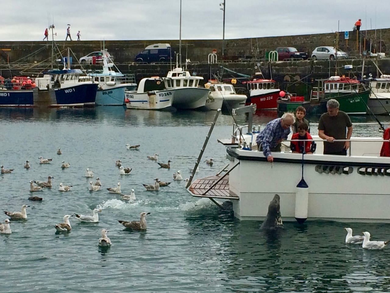 Resten av Irlands ostkust blir för motor en lugn dag. Till kvällen ankrar vi på 5 meters djup en kilometer från land med hela horisonten utanför oss. Nästa morgon går vi på högvatten runt hörnet till fiskebyn Kilmore Quay. Här är det fisket och tidvattnet som bestämmer tempot. Två hamnsälar verkar leva gott på det de tigger till sig. Fish-and-chips-stället har ibland en väntetid på nästan en timme, men är verkligen värd att vänta på.