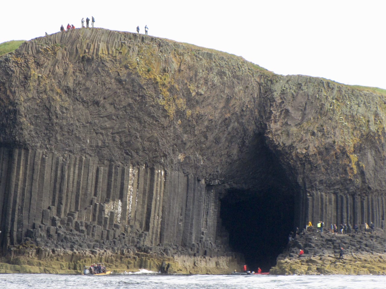 Jag steg i land på Staffa, vandrade över de gräsbevuxna klipptopparna och längs hala klippor in i grottorna. Mycket fint, men lunnefåglarna var bortflugna. Dock såg vi havssula, fint det med.